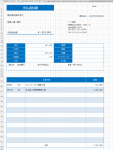 工事別仕入先毎に並べ替える機能付きの支払査定表を出力します。