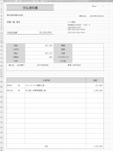 工事原価明細書をA3サイズで出力します。