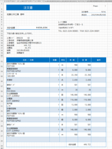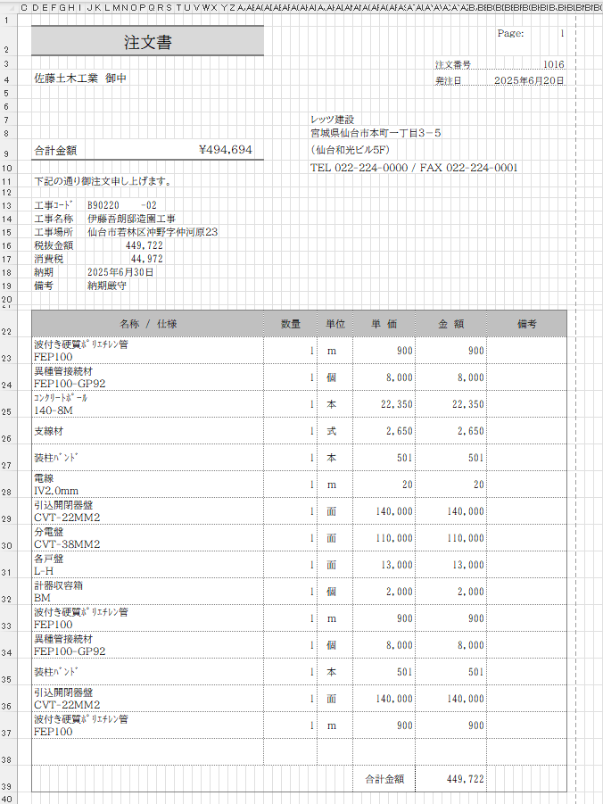 工事登録の情報から注文書を出力します。