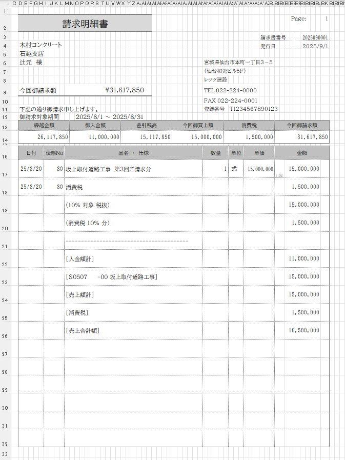 出力帳票:請求明細書 数量単位単価あり