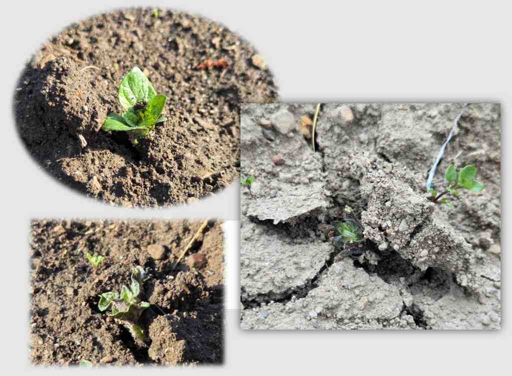 昨年は 植えつけ後 22日で芽が出ましたけれど、今年は なんと 17日で出ました。5日も早い!