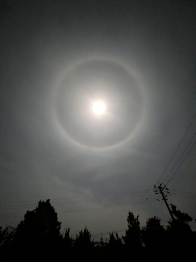 少し前に、夜空を見上げると月の周りに写真のような光の環ができておりビックリして写真を撮りました!