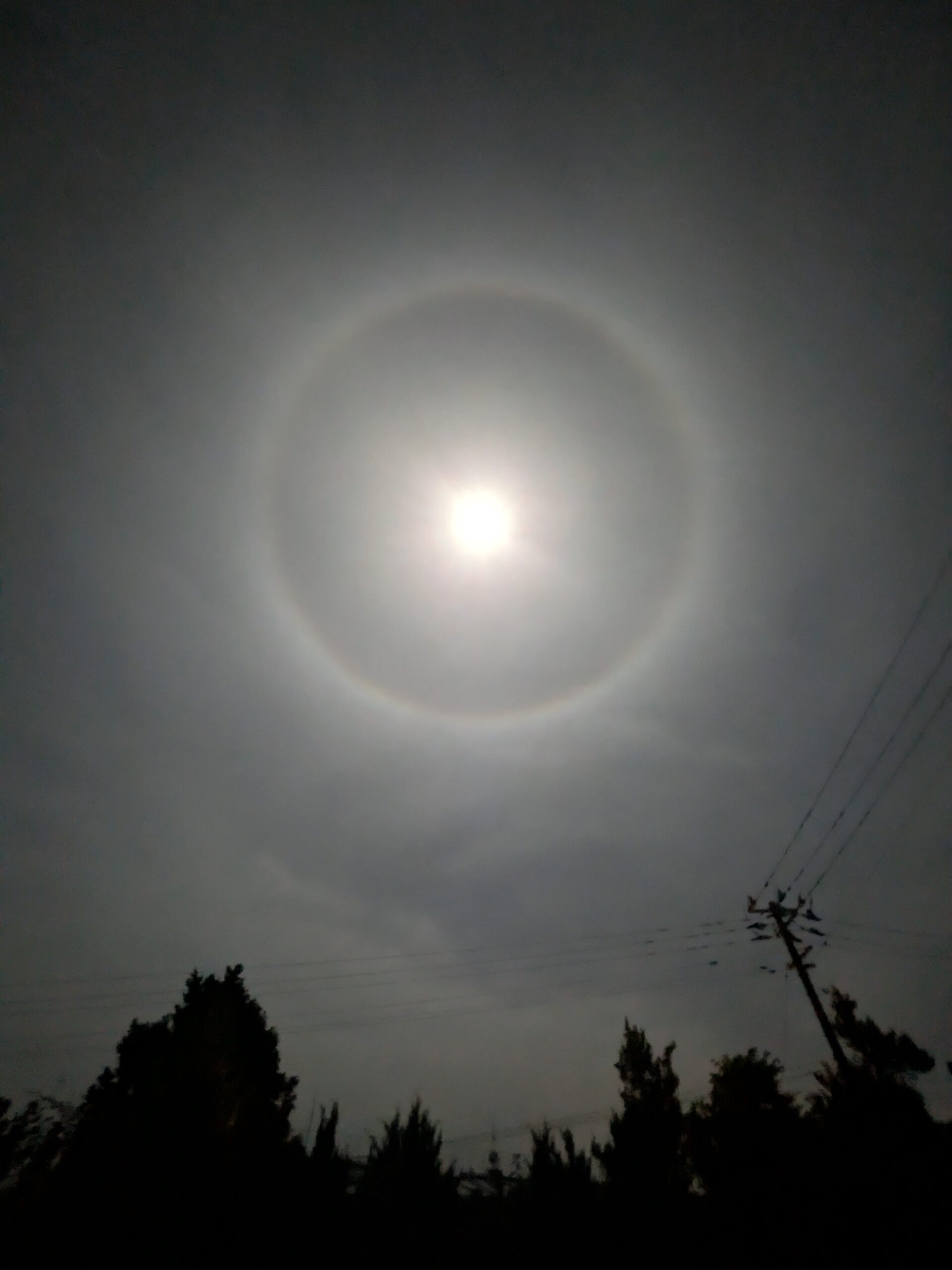 ちなみに日中太陽の周りに出るものは「ハロ」と呼ばれることがあり、こちらはずいぶん前に見たことがあったので、昼夜ともにお目にかかれてハッピーな気持ちになりました。