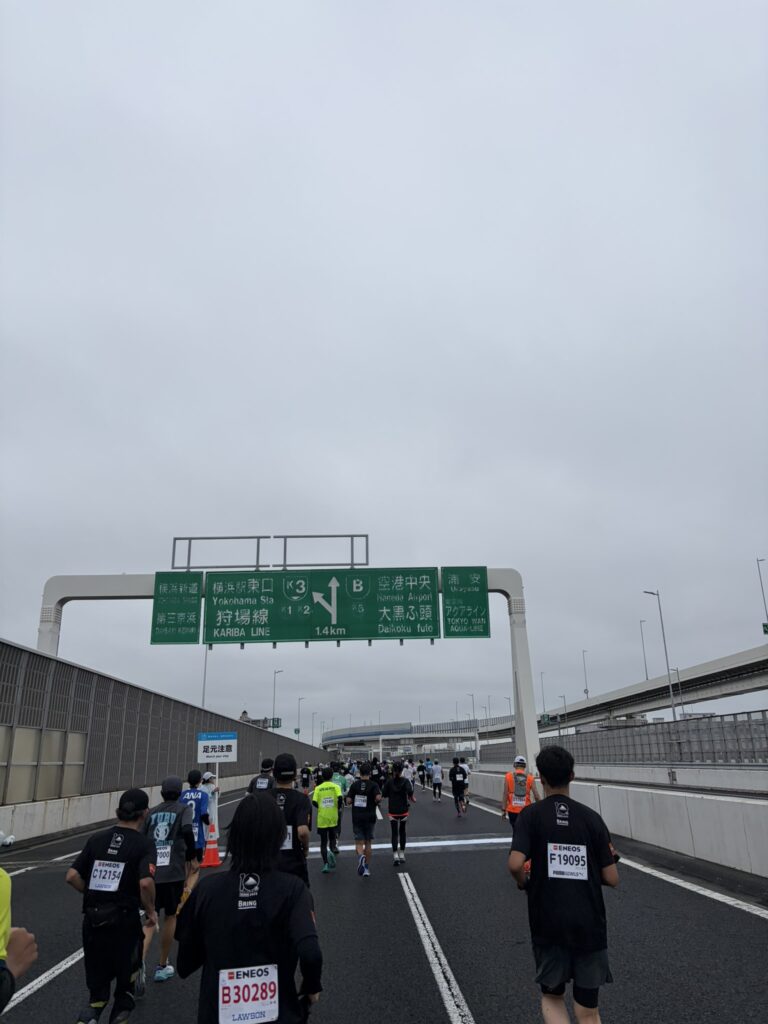 赤レンガ倉庫、山下公園のそばを駆け抜け、さらに普段は立ち入ることのできない高速道路の一部もコースになっていたんです。非日常感満載です。