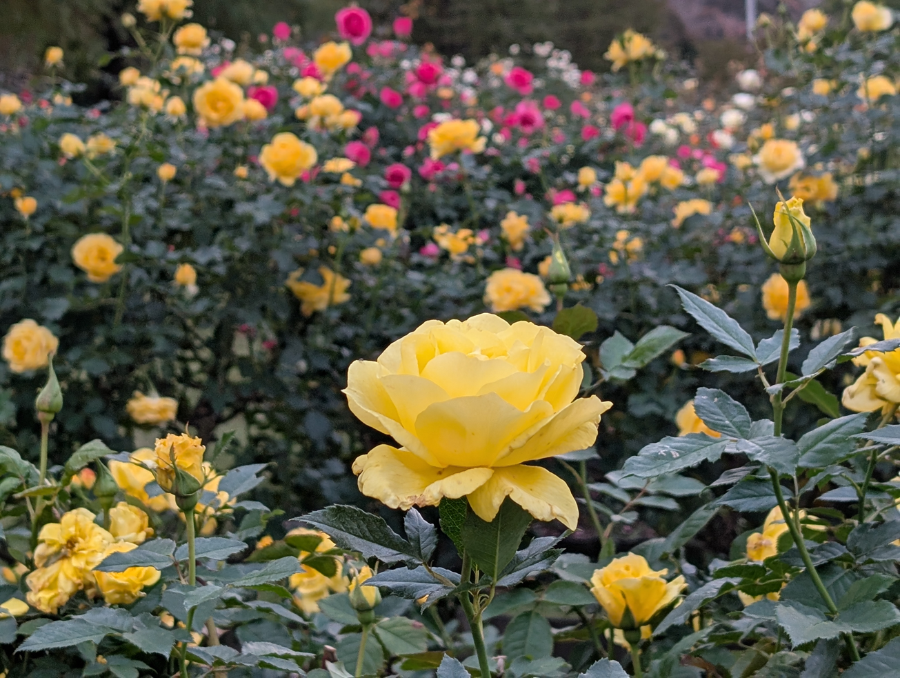 黄色、赤、紫…それに大きさも全然ちがってこんなにバラの種類があるのかと思わされるくらいです。