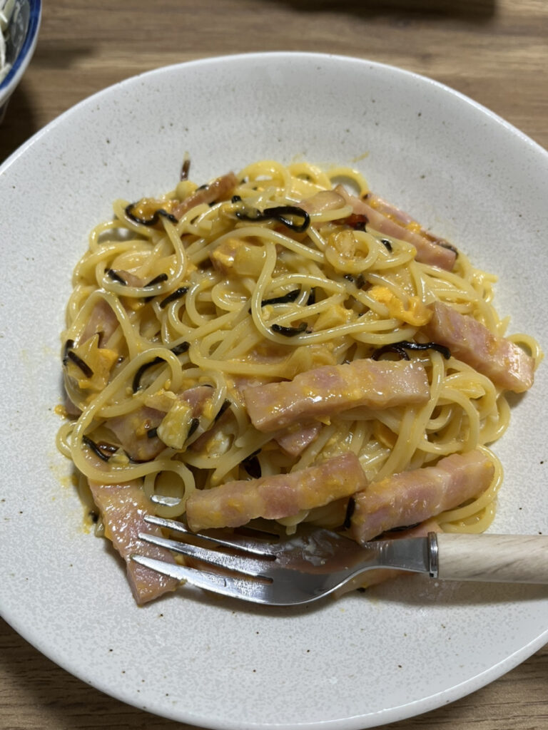 (盛り付けセンスが無さすぎて、美味しそうに見えませんね・・・黒いのは塩こんぶです)